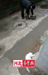 從23日晚上開(kāi)始,陸續(xù)有石市范東宿舍的居民被橫在一棟單元樓門口的貓尸嚇住,墊著報(bào)紙的貓頭不久也被人們發(fā)現(xiàn)。驚恐之余,居民們?nèi)呵榧,“殺貓兇手”也引發(fā)人們的種種猜想。