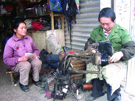 夫妻倆是四川武勝人。20年前,文應剛帶著妻子和兩個兒子趕到南川,以補鞋為生。妻子周德玲在解放路擺攤補鞋,文應剛則挑著補鞋機走鄉(xiāng)串戶。