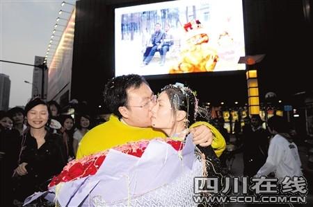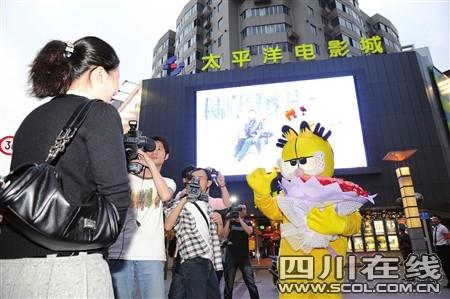 昨晚7點(diǎn),應(yīng)男友的邀請,鄭小姐來到成都春熙路商圈的青年路太平洋影城準(zhǔn)備和男友一起看電影。剛走到影城門口,鄭小姐突然發(fā)現(xiàn):影城門口的大屏幕上,居然正在播放由自己和男友平時(shí)照片所組成的短片。沒等鄭小姐回過神來,身穿加菲貓?jiān)煨头b的男友周先生已捧著大束玫瑰走上前來,單膝跪地:“嫁給我吧。”