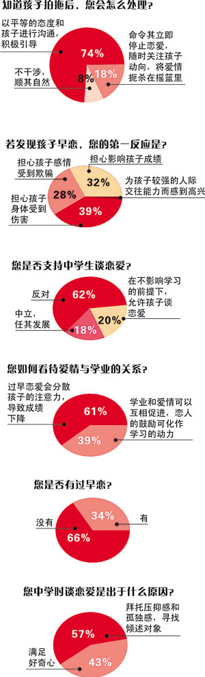 調(diào)查顯示,六成受訪者明確表示反對中學(xué)生談戀愛,只有兩成受訪者支持中學(xué)生早戀。