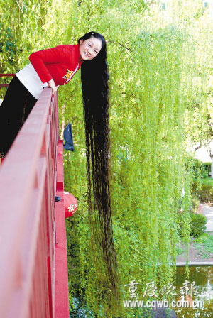 來自云陽縣青龍路 云陽縣的程世瓊女士蓄發(fā)16年,頭發(fā)長達2.5米。為保持頭發(fā)的烏黑光澤,每次洗頭,程世瓊都用自己獨制的秘方。