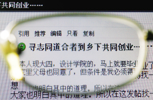 “但會有愿意去鄉(xiāng)下的女孩么?”“OXY-001”在BBS上發(fā)帖《尋志同道合者到下鄉(xiāng)共同創(chuàng)業(yè)》。“OXY-001”在帖子里說:“你要是夢想著找一帥哥就別來了,你要想找一錢包就別見了!你要真是一仙女我也接不住,沒期待您長得跟畫報封面一樣,能做賢妻良兒媳,外表時尚,內(nèi)心保守,身心都健康的一般人就行,要是多少還有點(diǎn)婉約那就更靠譜了!”
