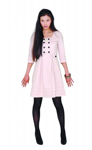 珍珠粉是今年的流行色,非常適合春天這個季節(jié),這件衣服的面料比較厚,又適合在有點涼的時候穿。這個款式簡單又甜美,非常適合OL和具有可愛氣質的女性穿著。發(fā)型最好搭配比較自然的披肩發(fā)。