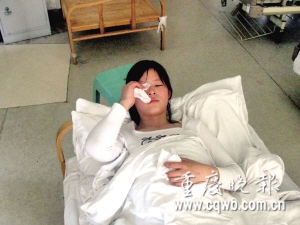 來自西南醫(yī)院 8年沒得到母愛的隆臘梅,此次被查出先天性心臟病,急需手術(shù)。因手術(shù)風險大,臘梅想在手術(shù)前讓媽媽抱抱。昨日,西南醫(yī)院內(nèi)科7樓42床,隆臘梅哭著告訴記者:“哪怕媽媽來看一眼,我也會從容面對手術(shù)!