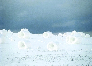 據(jù)當(dāng)?shù)孛襟w20日報道,美國一名消防員在今年3月底拍攝到一種罕見的自熱現(xiàn)象“雪卷”,并在最近將照片公之于眾。從照片上看,這些“雪卷”類似一個個雪做的席子,卷成一團(tuán),在荒蕪人煙的草原上安靜地佇立。