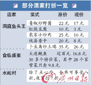 “最近上酒樓吃飯便宜了!奔易『V閰^(qū)的李小姐告訴記者,下渡路的渝風(fēng)樓,原先賣38元的酸菜魚、跳水蛙都降到18元,經(jīng)?吹綆讉(gè)年輕人就圍著兩大盤這樣的菜式,再叫個(gè)飯就可以完成一餐,很劃算。