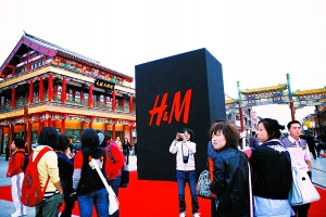 今天上午,瑞典著名服裝品牌H&M在京首家專賣店前門店開業(yè)。昨晚該旗艦店在前門大街舉辦了隆重的開幕典禮。近500米的紅毯從前門大街北口一直鋪到H&M門口,而最終乘坐當當車前來助興的明星們更是引起現(xiàn)場轟動。 (記者于海波 谷多攝)
