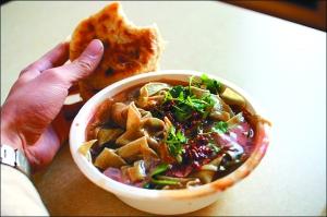 嘎巴菜是天津特色小吃,加上燒餅,就是一頓豐盛早餐。資料圖片