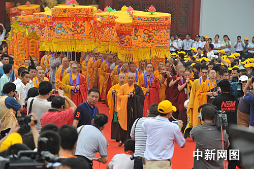 中新網(wǎng)4月28日電 近日,海南省澄邁縣千年古剎永慶寺,第七屆盈濱龍水節(jié)暨永慶寺開光法會在此舉行。海內(nèi)外53位高僧大德聯(lián)袂開光。海南省政協(xié)主席鐘文,省委常委、省委秘書長許俊,副省長符躍蘭,中國佛教協(xié)會、山西省有關(guān)領(lǐng)導(dǎo)以及主辦方代表山東魯能集團(tuán)有限公司副總裁趙健一行、澄邁縣委、縣政府領(lǐng)導(dǎo)與數(shù)萬信眾居士共同見證了這一佛門盛事。