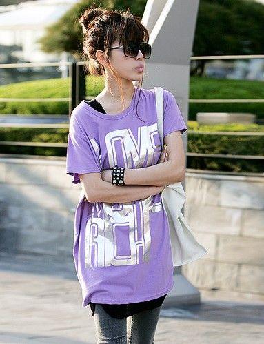 紫色的長衫加上酷酷閃亮的印花,一定是街頭最閃耀的那顆星星!長款的T恤加上最I(lǐng)N的鉛筆褲,這不僅僅可以把腰部讓人煩惱的贅肉給遮掩點(diǎn),凸顯身材!