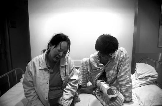 到昨日為止,兒子的搶救費用及其丈夫的醫(yī)療費用已超過5000元,盡管有親戚幫忙,但仍欠醫(yī)院將近一半的費用。住不起病房,她只好把丈夫蔡學(xué)斌轉(zhuǎn)移到醫(yī)院的走廊上。
