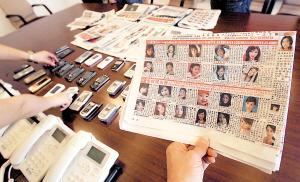 借開(kāi)門(mén)的一瞬間,化裝成物管人員的民警發(fā)現(xiàn),屋內(nèi)有3名女子手捧電話,一邊在翻看本子,一邊接電話。在一旁,幾十部手機(jī)、小靈通響個(gè)不停。