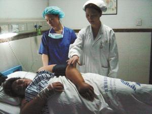 在醫(yī)院,比丈夫朱德全更緊張的是醫(yī)護人員。要扶李女士上下床,必須出動5個護士,用儀器檢查時需要她經(jīng)常翻身,醫(yī)生護士經(jīng)常累得大汗淋漓。張建華教授說,為李女士進行剖宮產(chǎn)手術(shù)的時候,她的助手達到6個人,比平時多了一倍。