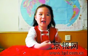 只要在百度上輸入“劉謙魔術(shù)揭秘”等關(guān)鍵詞,就能看見很多網(wǎng)友自己上傳的“魔術(shù)表演”。最近在網(wǎng)絡(luò)上廣為流傳的是一個(gè)“開心果穿透玻璃杯”魔術(shù),僅在新浪網(wǎng)的播放次數(shù)就達(dá)到了914239次。表演者是一個(gè)穿著紅背心、圓圓臉的可愛小女孩,她就是許佳琳。她坐在一張桌子前面,桌上一個(gè)透明玻璃杯倒置,杯底上放著一顆開心果。她用稚嫩的童聲一字一句地說:“現(xiàn)在是見證奇跡的時(shí)刻。”杯底上的開心果迅速消失了,而在桌面上出現(xiàn)了一顆開心果。她得意地看著鏡頭詢問:“我變得好不好?能不能吃顆開心果?”