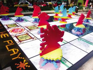 時(shí)代廣場(chǎng)外設(shè)置的“Shall we Play”巨型戶外斗獸棋可以滿足爸爸的童夢(mèng)。