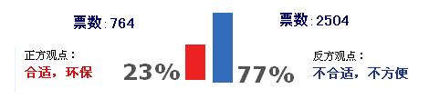 近日,人民網(wǎng)推出了辯論調(diào)查《長沙賓館不再提供免費(fèi)一次性日用品,合適嗎》。截至辯論結(jié)束時,共有3268名網(wǎng)友參與了投票。其中,2504名網(wǎng)友提出反對,占總?cè)藬?shù)的77%,理由主要為“不合適,不方便”,只有764名網(wǎng)友表示支持,認(rèn)為此舉有利于“環(huán)!。