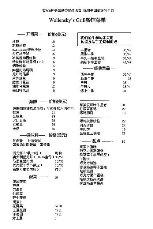 根據(jù)Smith&Wollensky牛排連鎖店網(wǎng)站的資料,這家餐廳每道菜在30~60美元之間,最貴的一款菜是14盎司的澳大利亞龍蝦,價值59美元。對于211萬美元的成交價格,Smith&Wollensky顯得很驚訝,他們稱“相對競拍的天價,這頓午餐花費(fèi)只是個零頭!