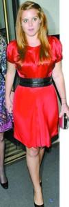比特萊斯在晚宴上身穿一件售價(jià)為269英鎊的Marc Jacobs紅裙;蛟S是為了讓人們對(duì)她的纖腰引起重視,比特萊斯還系上了一根黑色的寬腰帶。