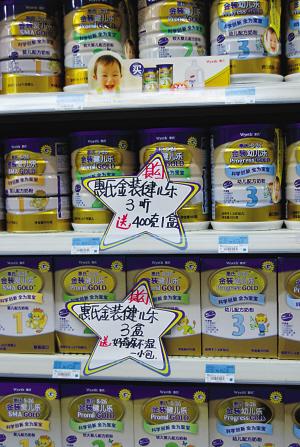 圖:一超市里洋奶粉促銷(xiāo),買(mǎi)到指定數(shù)量,總價(jià)不比漲價(jià)前高。