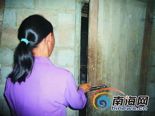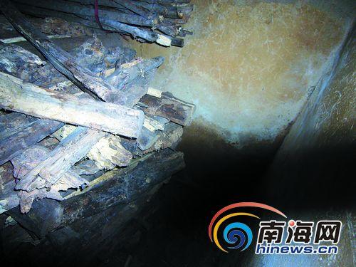 南國(guó)都市報(bào)記者來(lái)到楊才邦4年來(lái)藏匿的地點(diǎn)——白沙縣七坊鎮(zhèn)光雅照明經(jīng)濟(jì)場(chǎng)。記者進(jìn)了主屋左拐走進(jìn)一間大約4米長(zhǎng)的里屋,繼續(xù)往里走就是楊才邦4年以來(lái)藏身的廚房。廚房角落里有一個(gè)大約1米多高的木材堆,仔細(xì)看才能看出那是用木材堆積成的小暗房,小暗房長(zhǎng)寬不足2米,正好可以容納一個(gè)人。