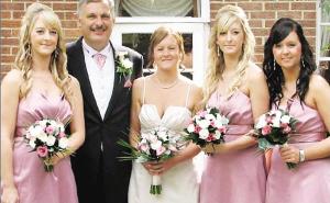 圖為新娘卡倫(左三)、新郎肯尼斯和他們?nèi)齻充當伴娘的女兒。