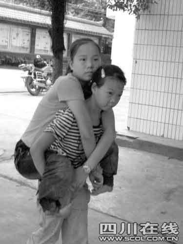 初見(jiàn)王琴,誰(shuí)都看不出她14歲。1.4米的身高,70斤的體重,幼稚的臉龐,站在班上的女生中,她顯得特別矮小和瘦弱。然而,當(dāng)她背著體重達(dá)90斤的姐姐進(jìn)出教室時(shí),班上的80多名學(xué)生都感到吃驚,“看不出來(lái),這個(gè)女生的力氣還真大!”