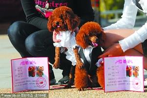 此次共有15對(duì)狗狗情侶喜結(jié)良緣。先是狗狗情侶坐車游園一周,然后一一通過(guò)紅地毯步入結(jié)婚現(xiàn)場(chǎng),最后由主持人宣布兩對(duì)狗狗結(jié)為夫妻,現(xiàn)場(chǎng)頒發(fā)南京市寵物嘉年華管理中心頒發(fā)的結(jié)婚證書(shū)。鐘圖