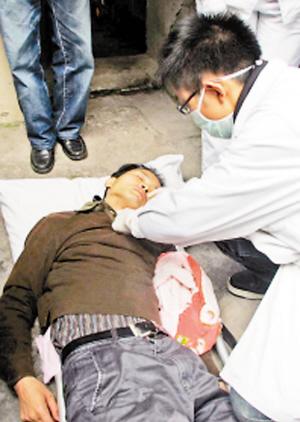 “警察出去后,見他還不放下刀片,三妹(王的妻子)就抱著孩子跪在他面前哀求。他用一只手去攙扶,但三妹沒有起來。”趙先生向記者講述了剛才發(fā)生的一幕,“我就跟他說,你放下刀片她就起來。沒想到他放下他老婆,用刀片往自己脖子上抹,我覺得這是最后的機會,只有沖上去搶他的刀片。”