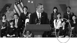 不久前,奧巴馬剛剛結(jié)束訪華,此行不僅讓奧巴馬成為各大媒體關(guān)注的焦點(diǎn),同時(shí)也使一位神秘女子成為網(wǎng)絡(luò)紅人。11月16日在上海科技館會(huì)場(chǎng),出現(xiàn)在奧巴馬身后的一名黑衣女子被攝入媒體鏡頭中,其亮麗的外形、獨(dú)特的氣質(zhì)吸引了眾多網(wǎng)民的眼球,網(wǎng)友迅速展開對(duì)女孩的“人肉搜索”。范冰冰親戚?楊瀾侄女?或者又是一場(chǎng)炒作?種種未經(jīng)確定的猜測(cè)充斥著各大論壇,也為黑衣女孩的身份蒙上了一層神秘的面紗。