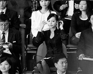 11月16日13時(shí),對(duì)中國(guó)進(jìn)行國(guó)事訪問的美國(guó)總統(tǒng)奧巴馬走進(jìn)上?萍拣^會(huì)場(chǎng),與中國(guó)青年展開對(duì)話。但是和奧巴馬的演講相比,現(xiàn)場(chǎng)攝影記者對(duì)一名黑衣女子表現(xiàn)出了更大的興趣。這名美女在現(xiàn)場(chǎng)脫掉紅色外套露出黑色套裝的全過程被記者用相機(jī)記錄下來,被制作成GIF動(dòng)畫上傳網(wǎng)絡(luò),隨后這組動(dòng)畫在網(wǎng)上論壇以及QQ群里廣泛傳播,隨后又有網(wǎng)友將奧巴馬演講視頻中有關(guān)該女子的片段截圖上傳,黑衣美女的美貌和氣質(zhì)迅速傾倒眾人。