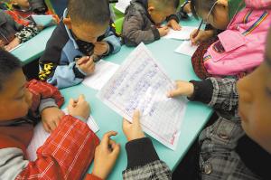 昨日,南岸十公里,孩子們在老師指導(dǎo)下,寫信給父母表示感恩。本報記者 陳浮 攝