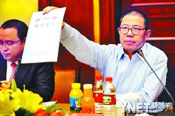 農(nóng)夫山泉董事長鐘睒睒昨表示對復檢“不予認同”。圖為11月30日鐘睒睒展示有關部門的檢驗報告-供圖/新華