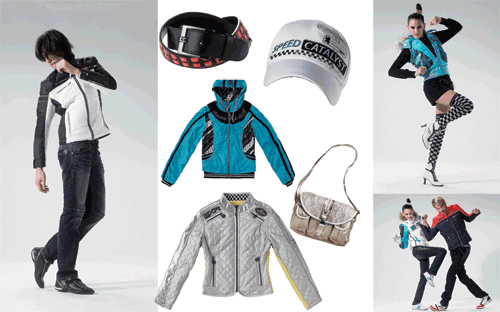 配合著這樣的理念,印滿字母的T恤街頭感十足,一副酷酷的壞壞的樣子讓男生的吸引力上升。外面搭配白色的茄克更顯帥氣清爽,一條做舊的牛仔褲復(fù)古感覺強(qiáng)烈,黑白為主色的運(yùn)動(dòng)鞋與整體的色系相統(tǒng)一。而女裝有以純黑基本色為主色調(diào),羅紋與真皮相結(jié)合,加以局部白色設(shè)計(jì)點(diǎn)綴,整體服裝風(fēng)格給人以簡(jiǎn)潔干練的感覺。胸前的立體紋案設(shè)計(jì),將賽車與休閑完美地結(jié)合在一起。白色弧形剪裁分割線,既完美勾勒出女性的優(yōu)美曲線,又凸顯女性自信獨(dú)立的氣質(zhì)。