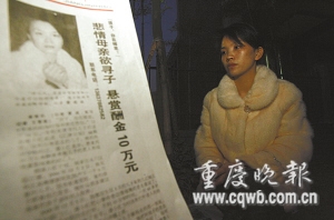 昨日下午,江津區(qū)東門廣場,朱巖出現(xiàn)在記者面前。身穿粉色毛皮外套,駕駛一輛銀灰色轎車,白凈的臉上脂粉未施。見到記者,她有點(diǎn)不好意思:“平時(shí)都有司機(jī)開車,這次自己開,還不太熟練,所以來晚了!彼f,11日來到江津,4天來找遍了江津的各個(gè)角落,希望依然渺茫。
