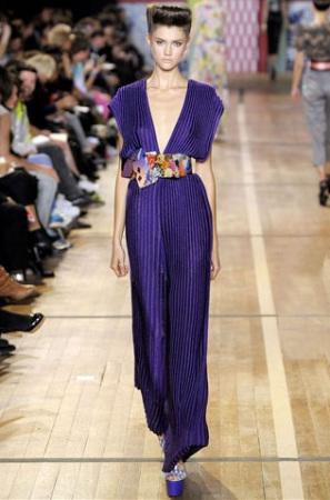 和式設(shè)計(jì)本季尚未退出潮流舞臺(tái),Basso &Brooke用深V領(lǐng)的衣襟和印著馥郁花朵的寬闊折紙感腰帶,將和風(fēng)融入希臘女神裙的設(shè)計(jì),顯得性感而比例姣好。而豎直褶裥面料,讓人想起三宅一生最著名的設(shè)計(jì),這樣的紋路的優(yōu)點(diǎn),就是讓人更加纖長,曲線畢露。