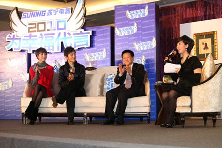 中新網(wǎng)1月25日電 昨日,國內(nèi)最早啟用形象代言人的零售企業(yè)——蘇寧電器正式啟用第二代代言人。一線明星黃曉明、新星王珞丹成為蘇寧最新代言人。蘇寧表示,在蘇寧電器迎來二十周年之際,用兩名新代言人傳達(dá)蘇寧“為幸福做點(diǎn)什么”的品牌訴求。