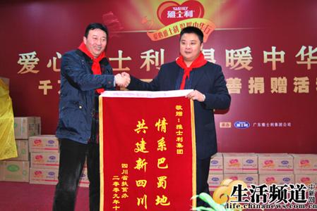 隨后,雅士利愛心小組來到“愛心雅士利•溫暖中華行”四川省捐贈儀式現(xiàn)場。儀式由蓬溪縣委常委、縣委組織部長張智勇主持,四川省扶貧辦社會扶貧處處長楊邦華、遂寧市扶貧辦主任戴見明、蓬溪縣人大常委會副主任吳岳寧、蓬溪縣人民政府副縣長廖理、楊文彬及廣安市廣安區(qū)商務(wù)局局長張自勇、廣安市廣安區(qū)扶貧辦副主任肖開武等地方領(lǐng)導(dǎo)和《中國扶貧》雜志社常務(wù)副社長郭金之等一行出席了現(xiàn)場!端拇ㄈ請蟆、遂寧電視臺、《遂寧日報》、蓬溪電視臺、《蓬溪周刊》等媒體記者一起見證捐贈過程。