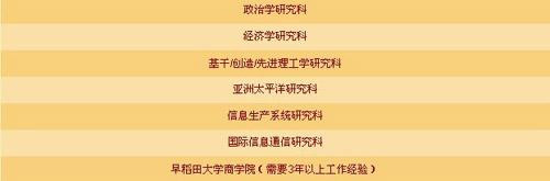 早稻田大學(xué)開放以下專業(yè)供獲得獎學(xué)金的學(xué)生就讀