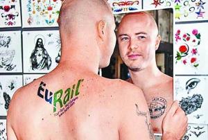 信息時(shí)報(bào)綜合報(bào)道 據(jù)英國媒體3日報(bào)道,澳大利亞一名失業(yè)漢知道雙親渴望到歐洲旅行后,為讓他們今年有個(gè)難忘的結(jié)婚周年紀(jì)念,毅然向歐洲鐵路公司提出建議,他把該公司的標(biāo)志賣廣告文在身上,換取兩張免費(fèi)歐洲游車票,沒想到最后竟得償所愿。