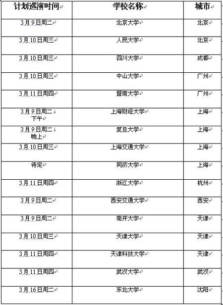 康師傅-早稻田大學(xué)創(chuàng)新挑戰(zhàn)賽 高校巡講日程