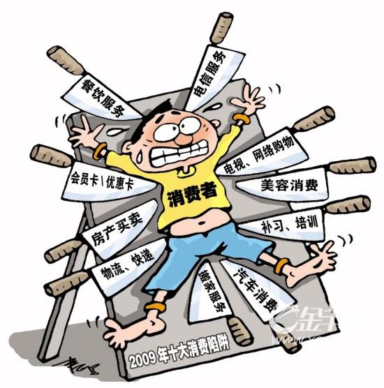 外出就餐,點只龍蝦,上桌時才發(fā)現(xiàn)“此蝦非彼蝦”;已經(jīng)“叫!钡碾娦艠I(yè)務(wù),無端端還要繳費;花大錢辦了張“會員卡”,有天發(fā)現(xiàn)店卻“關(guān)門大吉”了;高高興興買了套房子,收樓時卻發(fā)現(xiàn)小區(qū)的樣子與開發(fā)商當(dāng)初的承諾完全兩個樣……凡此種種,皆與兩個字有關(guān):陷阱。而此類陷阱又是如此之多,令消費者防不勝防,一不小心就掉了進去。前天,市工商局12315指揮中心就公布了廣州市2009年十大消費陷阱———