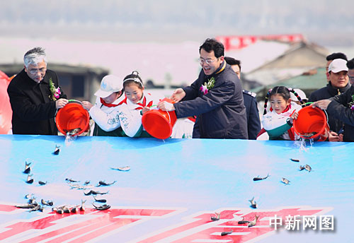 中新網(wǎng)宿遷3月10日電 (蔡云海 周翔 朱曉穎)9日,江蘇宿遷在洋河灘漁港啟動(dòng)首屆駱馬湖放魚節(jié)儀式、放魚節(jié)歷時(shí)3天!敖K省駱馬湖漁政搜救中心”、“江蘇省駱馬湖漁業(yè)濕地管護(hù)站”同時(shí)揭牌。