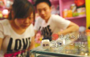 昨中午,渝中區(qū)解放碑金鷹女人廣場(chǎng)。不時(shí)有都市女白領(lǐng)來到“B&Y”飾物店,指名點(diǎn)姓要買家務(wù)骰子。老板張彬見狀解釋,“馬上去進(jìn)貨,請(qǐng)過幾天再來。每顆還是賣5元,不漲價(jià)。”