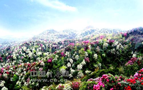 廣西金秀的圣堂山以萬(wàn)畝變色杜鵑林聞名。四五月份是圣堂山變色杜鵑炫耀自己的鼎盛時(shí)節(jié)。萬(wàn)畝連片變色杜鵑同時(shí)開(kāi)放,樹(shù)樹(shù)繁花,令人陶醉不已。在陽(yáng)光照耀下,杜鵑隨著花期變化而不斷變化花顏,由紅變紫再變白,每棵樹(shù)上紅、紫、白、黃競(jìng)相開(kāi)放,競(jìng)相斗妍,在綠葉的襯托下就像一把把色彩斑斕的大花傘,山風(fēng)吹拂,花浪翻滾,自然形成浩瀚花海。