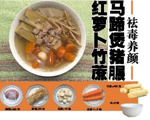春季二三月是皮膚病和小兒麻疹好發(fā)季節(jié),此時最適合飲用紅蘿卜竹蔗馬蹄茅根水,它能祛麻疹病毒,涼血解毒、清熱養(yǎng)陰、滋養(yǎng)肌膚。今天加一塊豬 一起煲湯,增加甜香之余,還有健脾養(yǎng)胃功效,是男女老少皆宜的靚湯。
