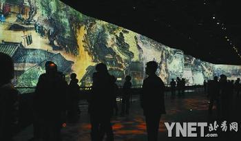 對于這幅電子巨作,以前媒體也報(bào)道的不少了,不過這幅圖到底有多大,似乎有兩種說法,有人說這幅圖是原作的100倍大,這顯然是夸張了,按照現(xiàn)場的解說,通過投影和動畫技術(shù)幻化出來的《清明上河圖》,比原作放大了30倍,實(shí)際是高6.3米、長130余米,觀眾走馬觀花還是得看10分鐘。