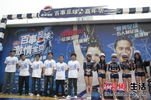中新網(wǎng)5月17日電 近日,“百事足球,激情寶貝——走進南非選拔賽”足球夢之隊6強選手再次前往足球嘉年華,給觀眾帶來視聽新感受。雖然天空下起綿綿細雨,但還是無法澆熄大家對活動的熱情,6強的球員們唱歌、跳舞、玩技巧樣樣精通,與足球?qū)氊?強配合也十分默契,最終通過足球知識的問答,決選出2位最佳球員贏得了與足球?qū)氊愐黄鹎巴戏堑耐ㄐ凶C。