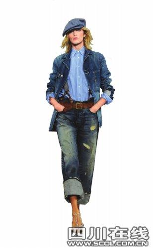 RalphLauren在2010春夏紐約時(shí)裝周系列發(fā)布會上,讓“男友式”牛仔新勢力大放異彩。卷邊、磨白做舊、夸張的破洞設(shè)計(jì)的男友式牛仔,加上一絲不茍的條紋襯衫、小西服外套或者牛仔夾克,再配上一頂牛仔報(bào)童帽,RalphLauren將女人骨子里的剛強(qiáng)和率性風(fēng)范發(fā)揮到極致,大張旗鼓地向全世界宣示“大女人主義”:即使是牛仔也要穿得比男人更有型。而Lacoste的“男友式”牛仔則更為內(nèi)斂,保留了經(jīng)典的寬褲管和卷邊設(shè)計(jì),較之有些咄咄逼人的RalphLauren,Lacoste更在有型之中展現(xiàn)輕松平和的生活態(tài)度。