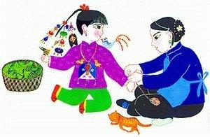 中國(guó)古代崇拜五色,以五色為吉祥色。因而,節(jié)日清晨,各家大人起床后第一件大事便是在孩子手腕、腳腕、脖子上拴五色線。系線時(shí),禁忌兒童開口說話。五色線不可任意折斷或丟棄,只能在夏季一場(chǎng)大雨或第一次洗澡時(shí),拋到河里。據(jù)說,戴五色線的兒童可以避開蛇蝎類毒蟲的傷害;扔到河里,意味著讓河水將瘟疫、疾病沖走,兒童由此可以保安康。