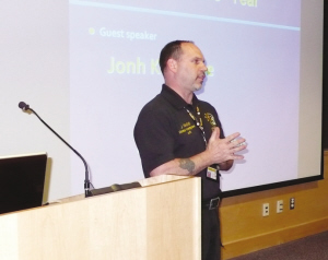 舊金山加大犯罪分析專家John Racine現(xiàn)場介紹安全常識,比如“雙肩背書包不可單肩背”,并當場扮演歹人如何能輕而易舉搶走學生肩頭的背包。在街頭行走時要顯示自信心,萬一感覺有人尾隨時,可以采取穿越馬路和到鄰近商店求助報警的方式來保護自己。(劉海平)